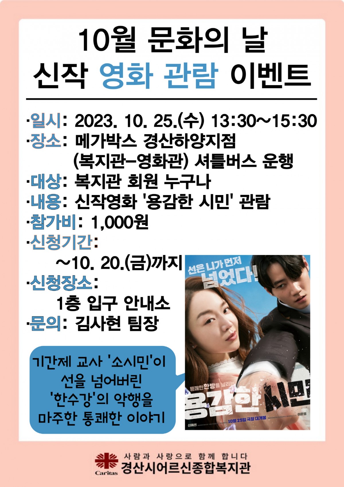 내용: 10월 신작영화 '용감한 시민' 관람 (한국 코미디 영화)