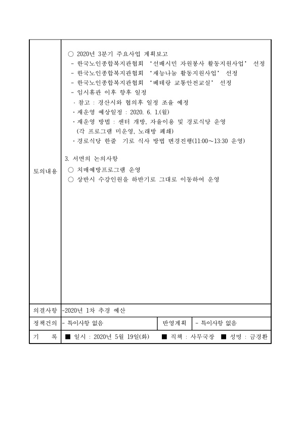2020년 2차 시설운영위원회 결과 페이지 정보 작성자 총괄기획팀장남리나 작성일 20-06-04 10:56 조회 1,173회 댓글 0건 본문 페이스북 공유 트위터 공유 구글+ 공유 이전글2020년 3차 시설운영위원회 결과 다음글[고시공고]2020년 경산시어르신복지센터 세입세출 예산 공고 목록 댓글목록 0 댓글목록 등록된 댓글이 없습니다.