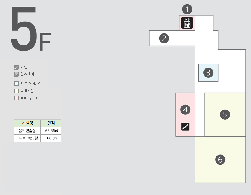 시설안내 경산시어르신종합복지관에서 운영되는 시설을 층별안내도를 통해 확인하실 수 있습니다. 시설현황 시 설 명경산시어르신종합복지관 대 표 자시 미 경 시설신고2015.02.04 개 관 일2015.03.01 운영법인사회복지법인 대구가톨릭사회복지회 주 소경북 경산시 하양읍 문화로 32 연 락 처Tel. 053-854-1666 Fax. 053-854-2666 이 메 일gsswc@daum.net 층별 안내도 1F 2F 3F 5F 1방풍실 2로비 3사무실 4상담실 5통신장비실 6계단실-1 7노래방 8서예실 9관장실 10화장실(남) 11화장실(여) 12재해대피실 13상담실 14전기실 15발전기실 16기계실 17ELEV 18경사로 19자동심장충격기(AED) 1프로그램1실 2장기/바둑실 3계단실-2 4휴게실(여) 5주방 6식당 7로비 8방풍실 9화장실(여) 10화장실(남) 11물리치료실 12컴퓨터실 13건강관리실 14ELEV 15계단실-1 16경사로 17자동심장충격기(AED) 1당구장 2휴게실(남) 3계단실-2 4강당 5로비 6화장실(여) 7화장실(남) 8프로그램2실 9탁구장 10포켓볼장 11ELEV 12계단실-1 13경사로 14자동심장충격기(AED) 1ELEV 2경사로 3로비 4계단실-1 5프로그램3실 6음악연습실